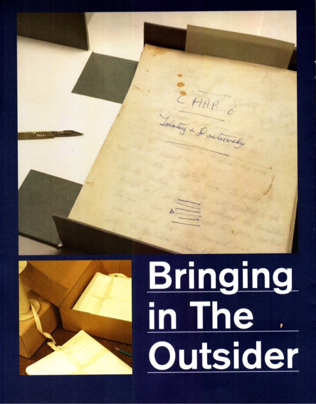 News from Wilson’s bibliographer Colin Stanley: “The Dept of Manuscripts at the University of Nottingham has digitised the original manuscript of ‘The Outsider’. It is available for researchers to view in their reading room. A prior appointment is necessary and, if you have not visited the Dept before, some ID will be needed in order to register with them as a reader.”